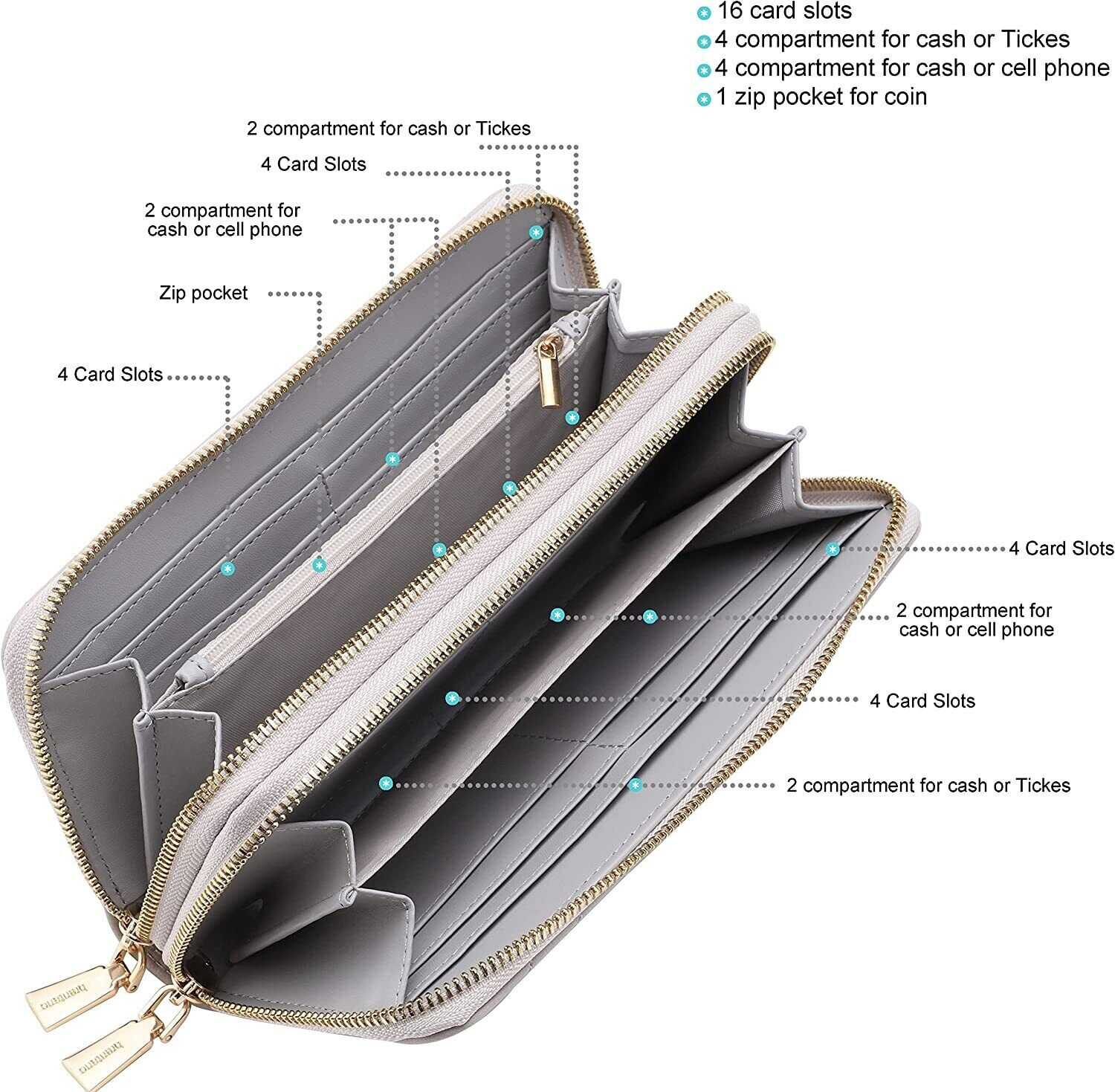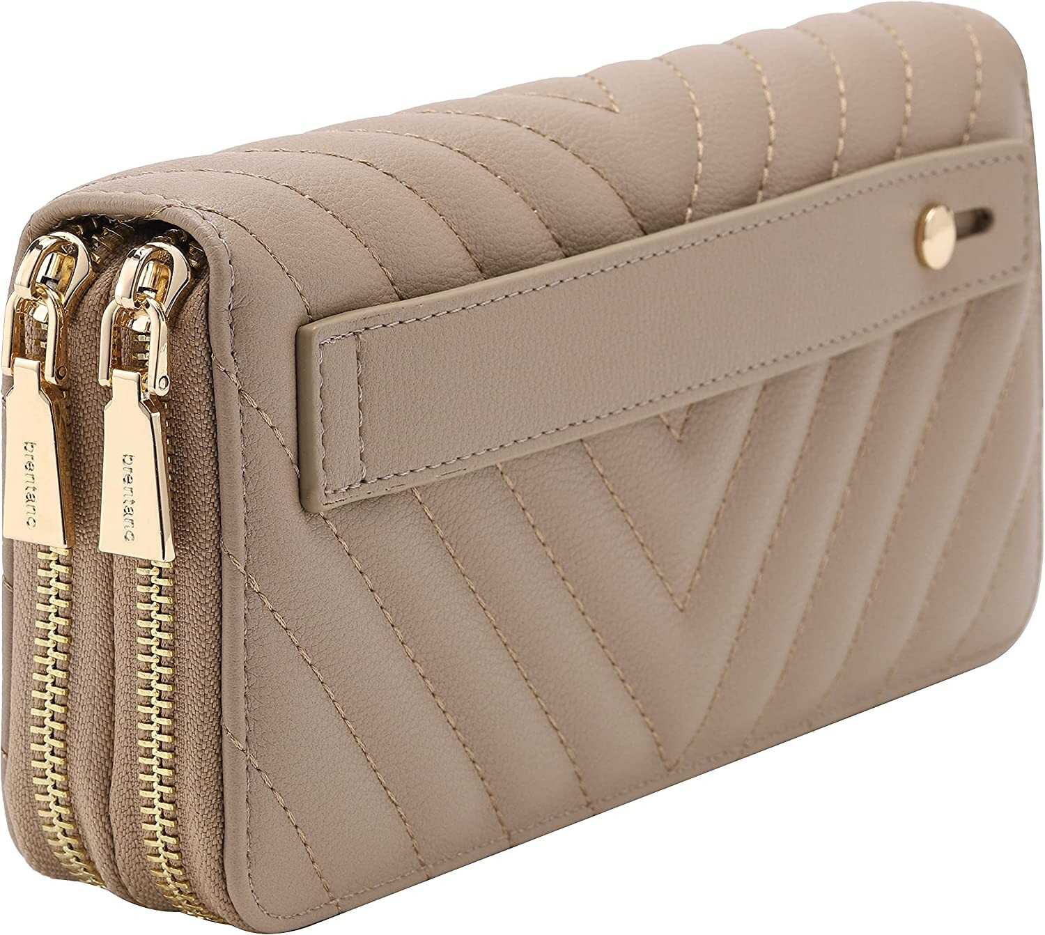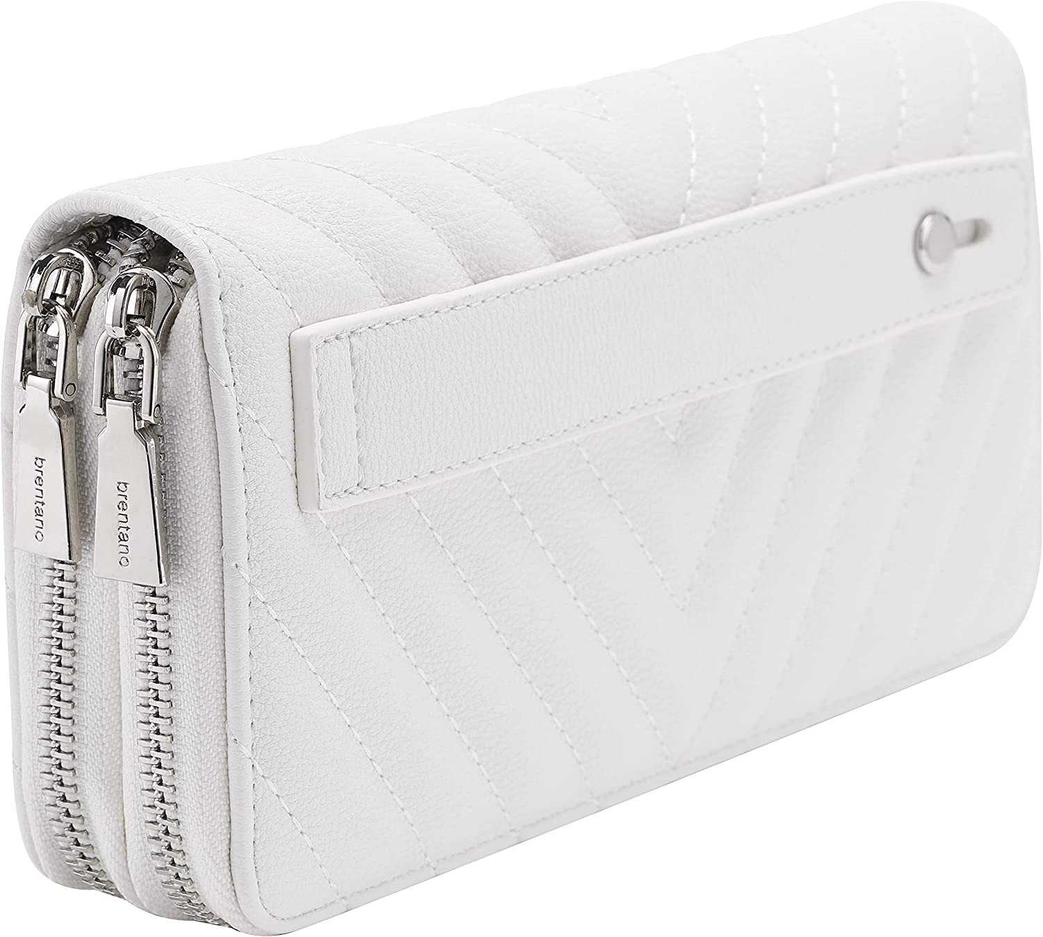 Vegan Leather Double Zipper Pocket Wallet with Grip Hand Strap (Chevron Embroide