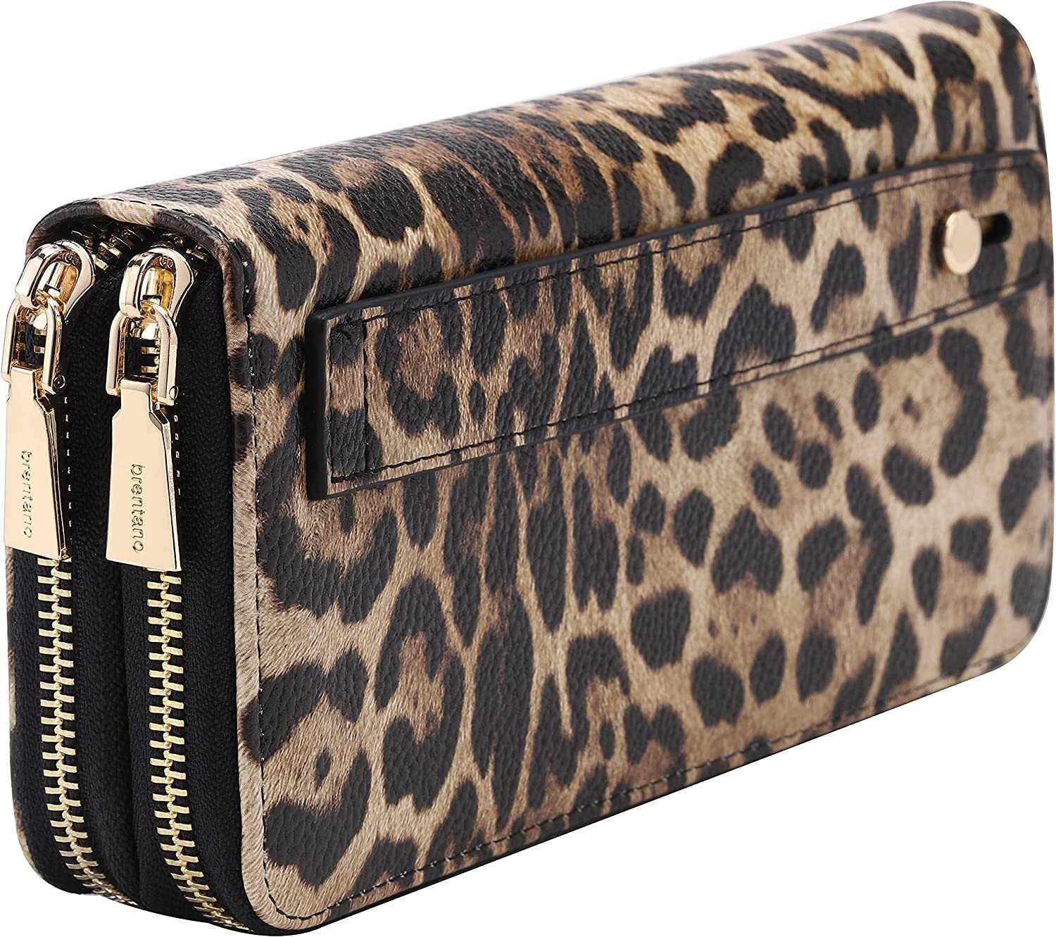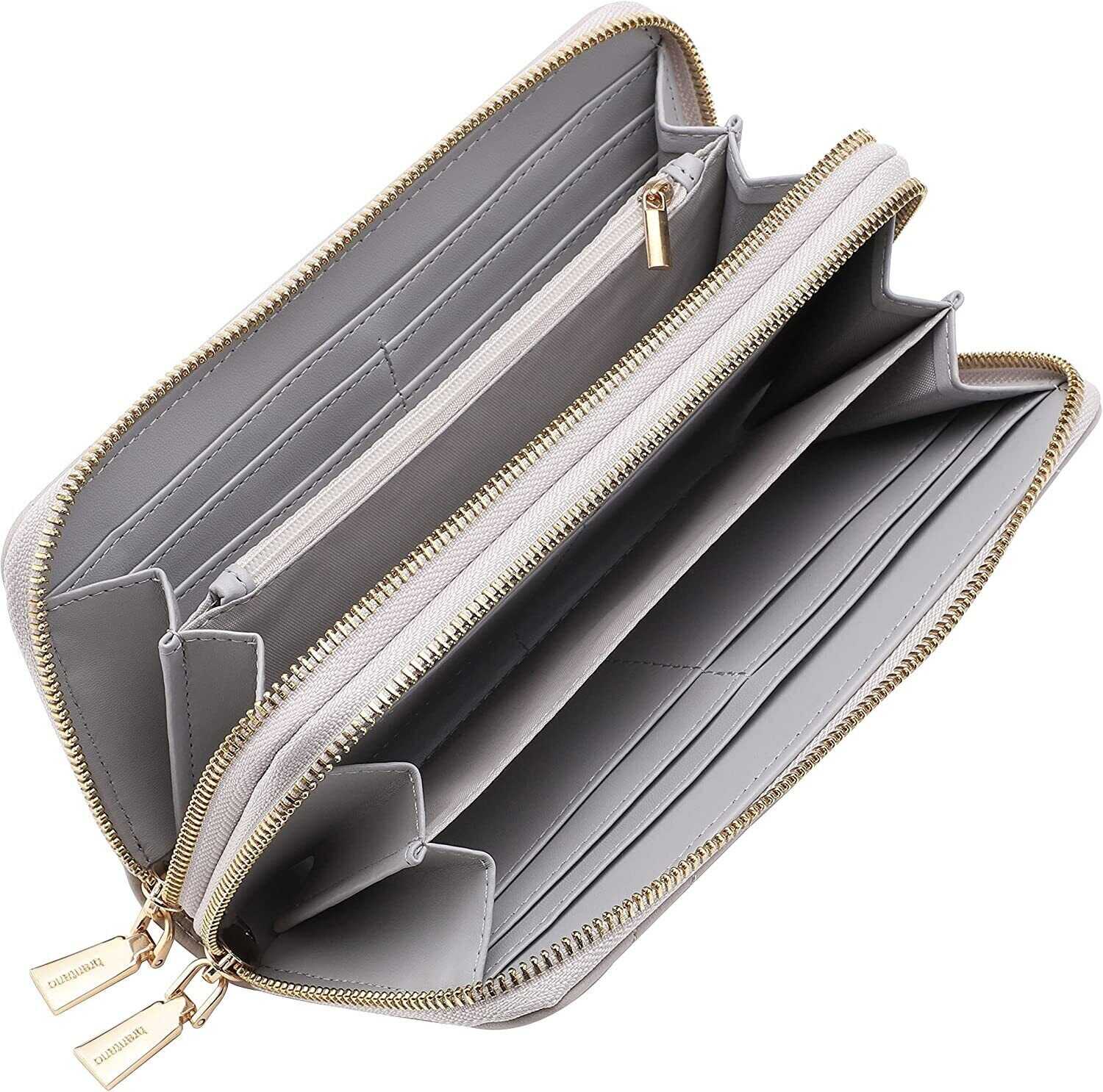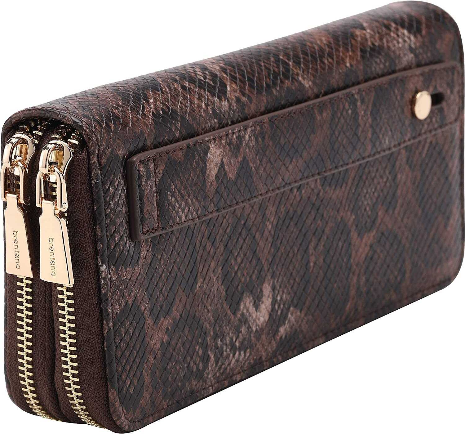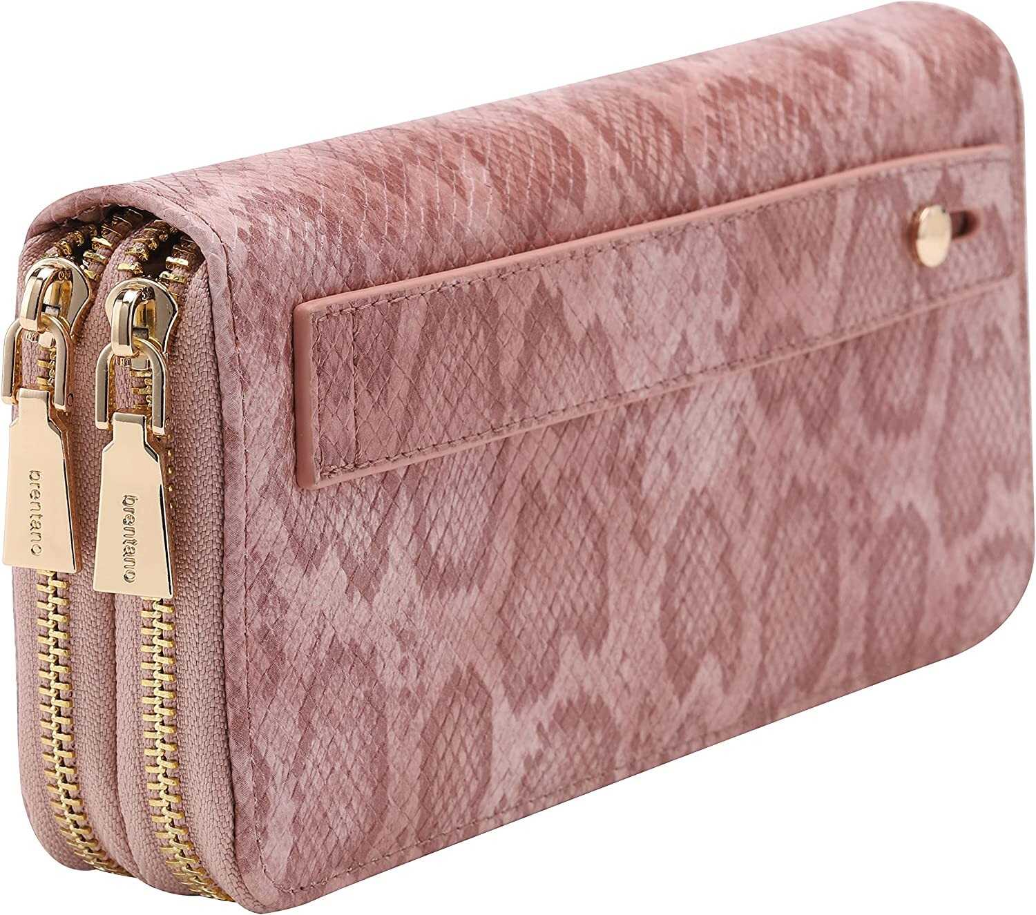 Vegan Leather Double Zipper Pocket Wallet with Grip Hand Strap (Chevron Embroide