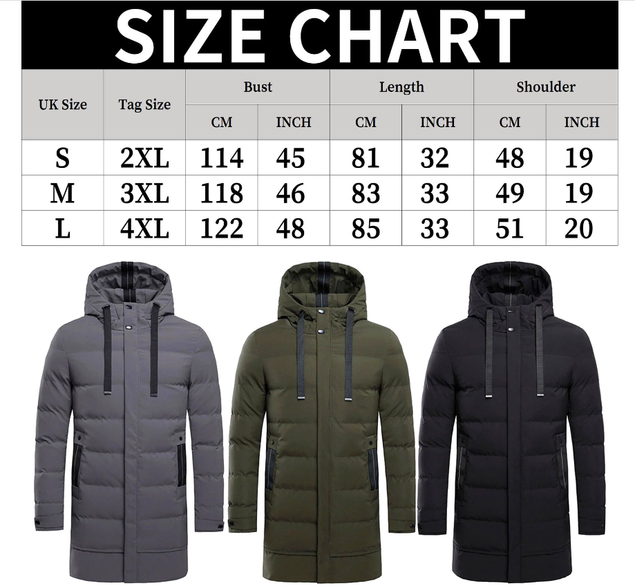 Package Include: 1x Mens Winter Jacket Note: 1.Due to the light and screen difference, the item's color may be slightly different from the pictures. Please understand. 2.Please allow 2-3% error due to manual measurement.Please make sure you don's mind before you mid. 3.Size doesn's fit all.Please carefully check size chart and select the size based on your real size.