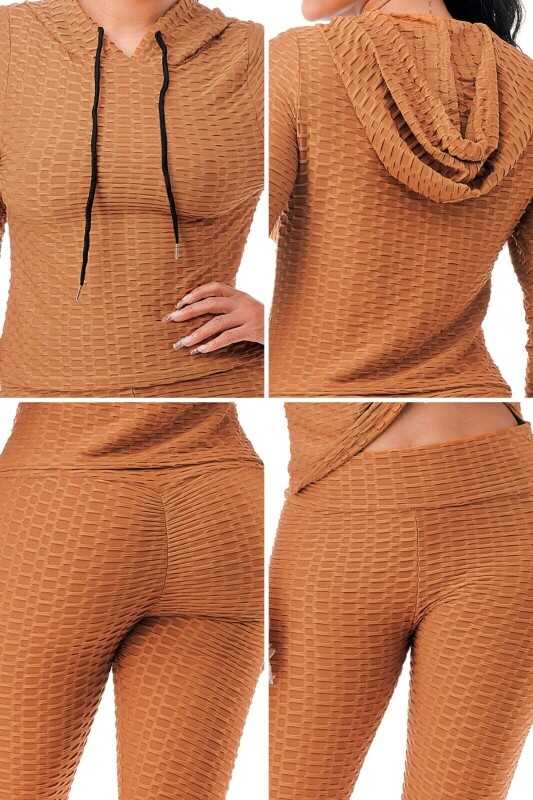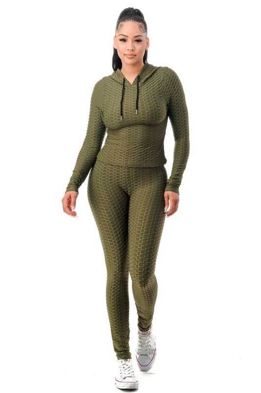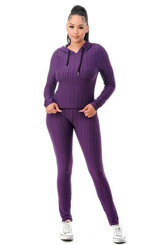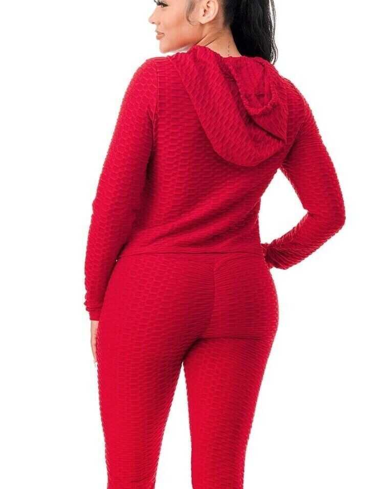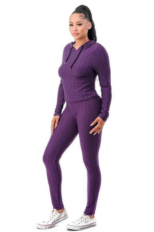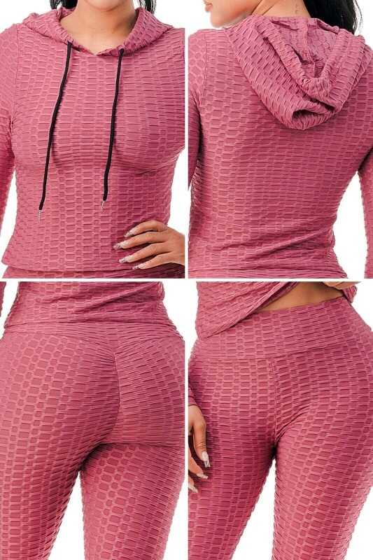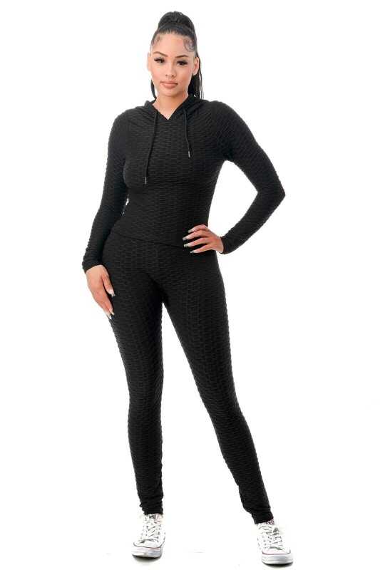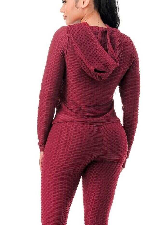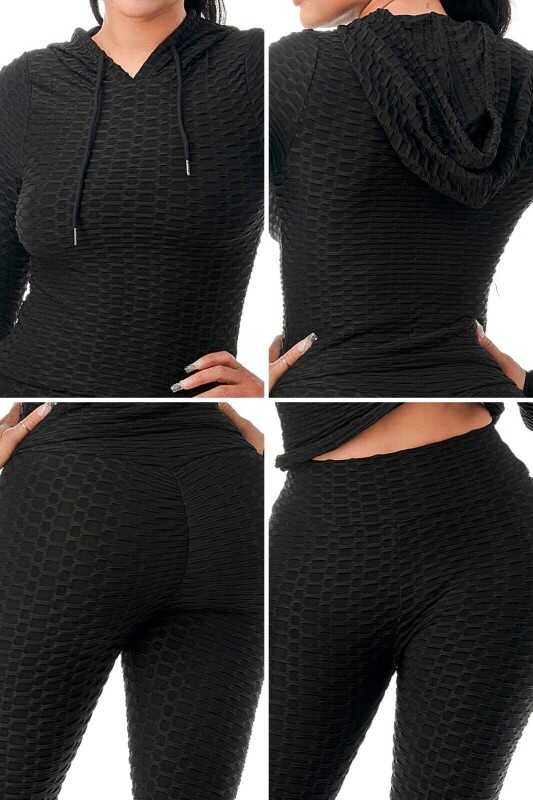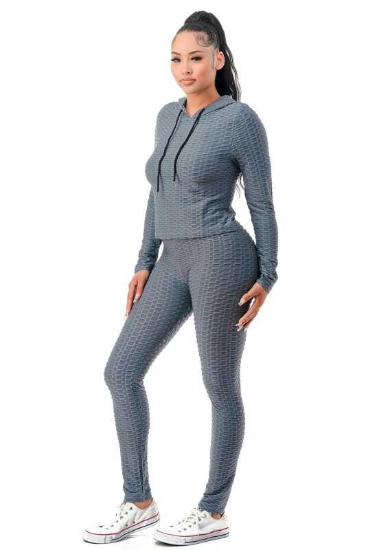 Women Texture 2 Piece Outfit Hoodie Top and Yoga Leggings Pants Workout Set