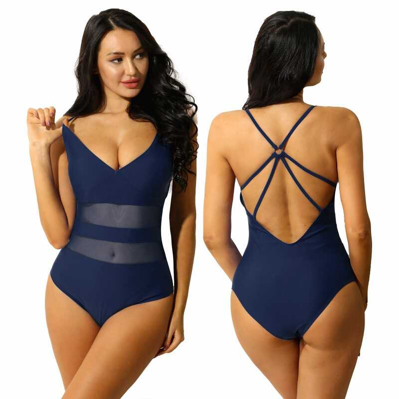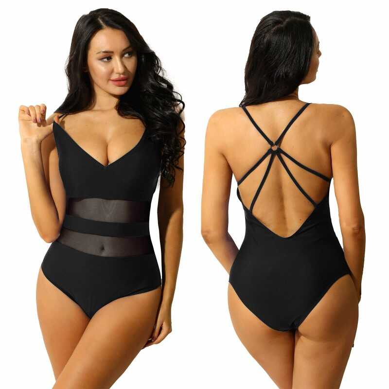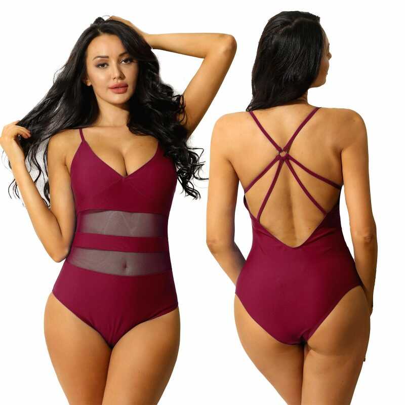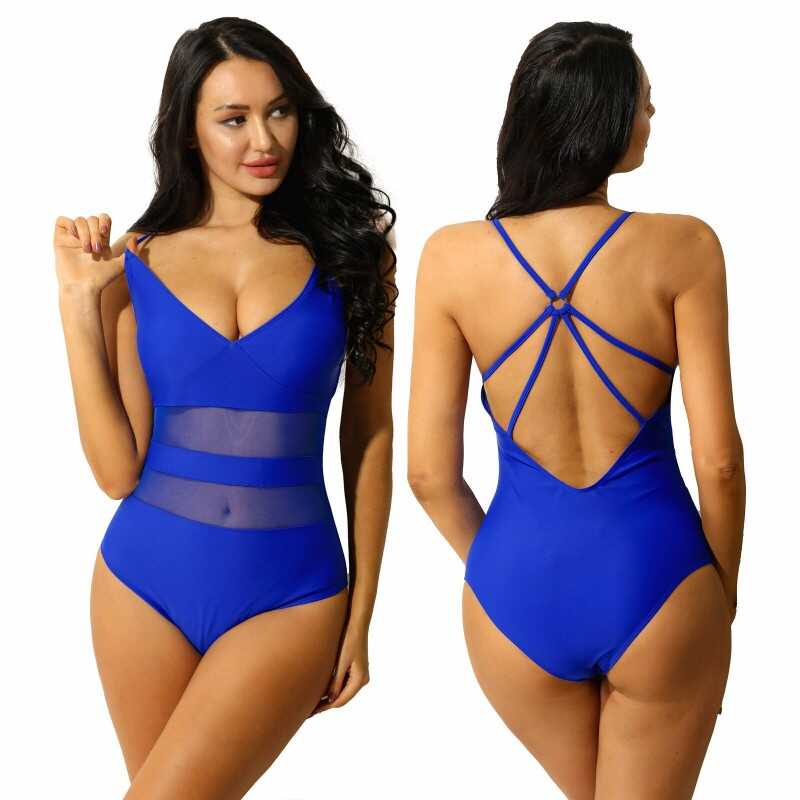 Women V Neck Cutout Monokini Swimsuit One-Piece Swimwear Bathing Suits Beachwear