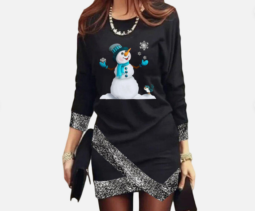 Women's Fashion Leisure Christmas Round Neck Long Sleeve Irregular Hem Dress