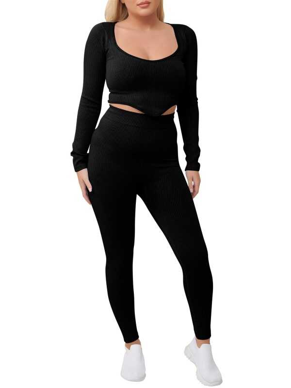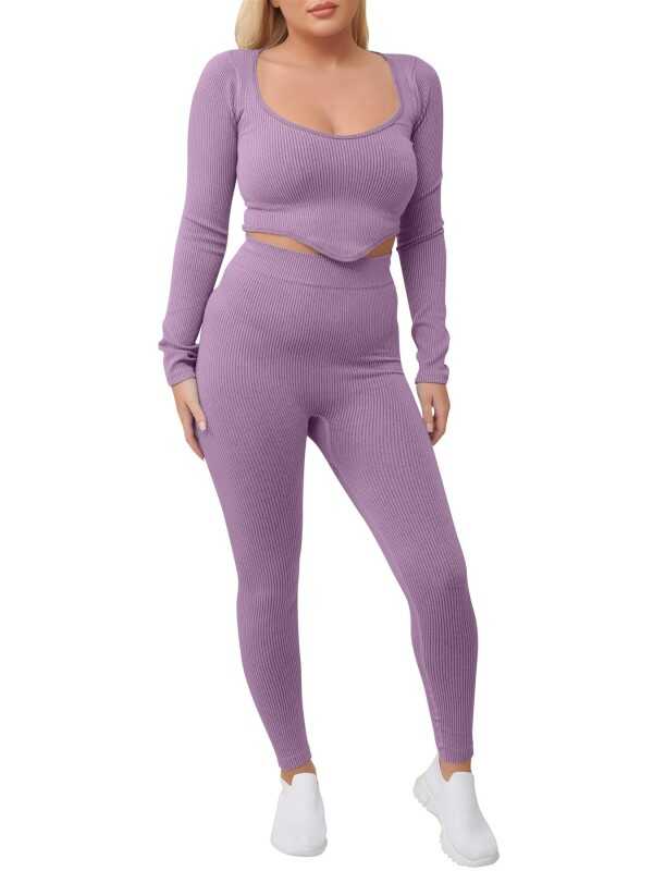 Ribbed, Tummy control, Perfect fit.Long sleeve, V hem crop top bra, workout outfit, 3D shape ,figure enhancer, cotton co-ord set , ribbed, elastic waistband, comfort.able