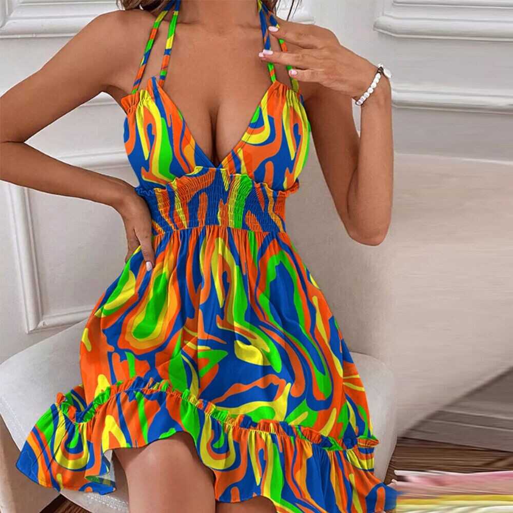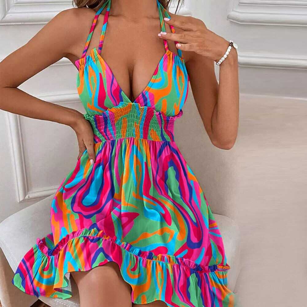 Womens Sexy Backless Swign Dress Summer Deep V-Neck Beach Party Cami Mini Dre