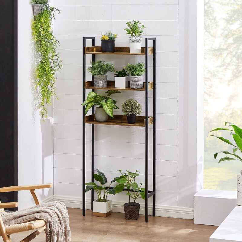 Wooden Over the Toilet Bathroom Storage 3-Tier Shelf Rack Metal Frame Organizer