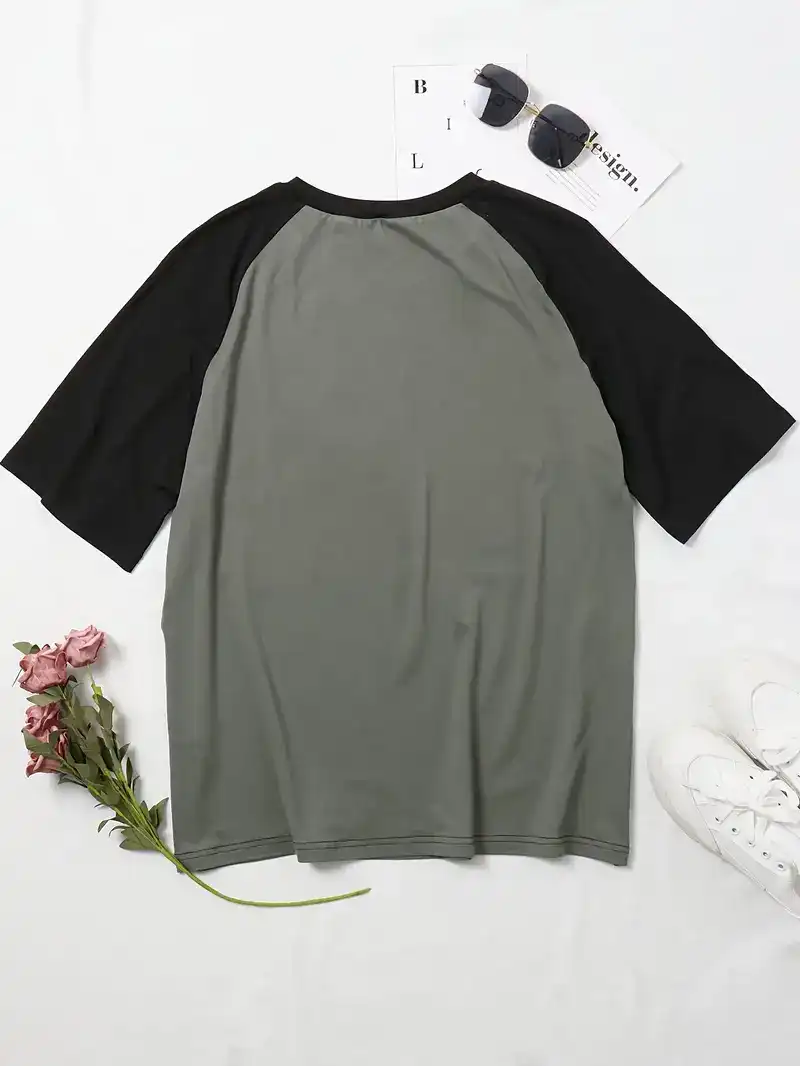 Y2K Raglan Sleeve T-Shirt, Short Sleeve Casual Top For Fall & Spring, Women's Clothing